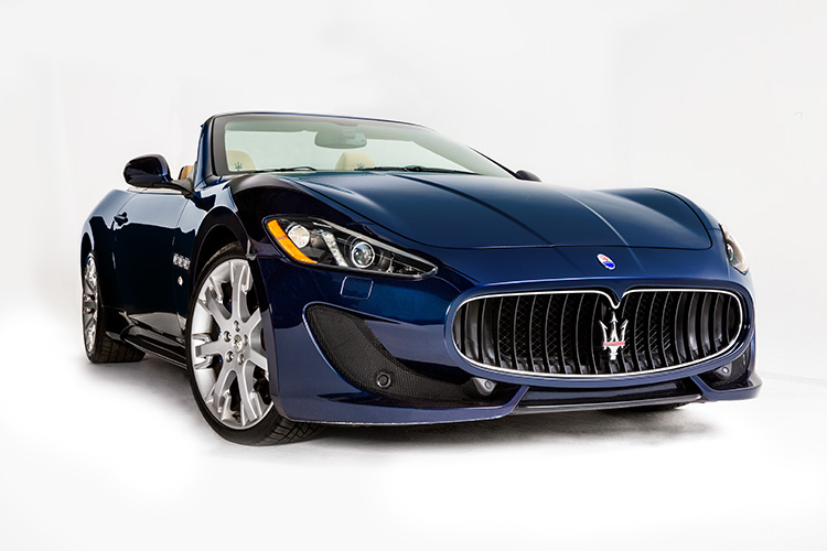 Last year, I got to shoot a classic Cobra and a brand new Corvette at photographer Paul Markow’s studio in Phoenix (a super-nice guy with a killer studio — big enough to shoot a car no problem, and a cove roof to bounce the lights off). This year I wound up shooting a Maserati GranTurismo — seen above (believe it or not, I rented it from Enterprise rent-a-car in Phoenix for a song), and then Adam Thaler, a photographer who follows me on Facebook, saw my search for an exotic car and brought over a red Ferrari California — so the shoot was on!